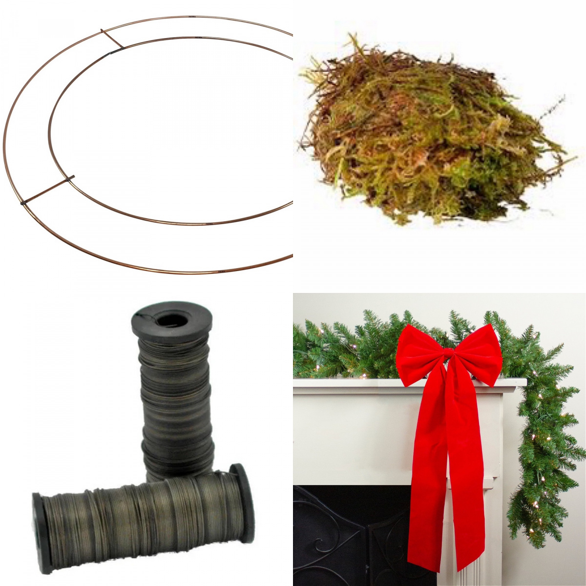 A basic wreath kit- this includes a wire wreath ring ,a bag of fresh moss to cover your ring, a reel of wire and a luxury bow (Bow colours may vary!)